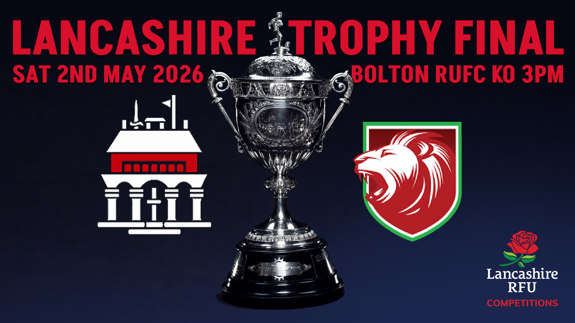 Congratulations to the 2026 Lancashire Senior Cup Competition Finalists. The Brian Leigh Lancashire Trophy Final will be played this Saturday. Dates and detials for the John Burgess Lancashire Cup Final and the Lancashire Plate Final are still to be confirmed as the availabilty of finalist teams is yet be determined due to their involvement in National Cup Competitions.